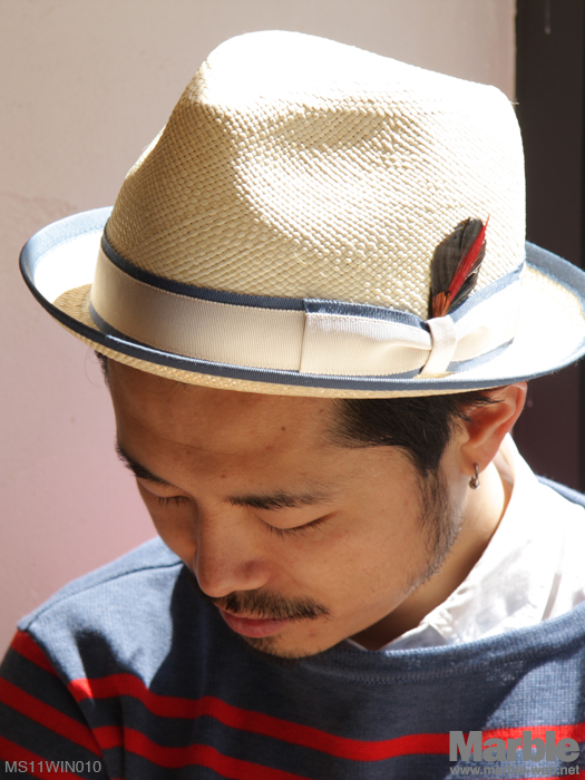 今や貴重となったパナマ草(トキヤ草)を編み上げて製作した春夏定番の麦わらハットが入荷しました。人工的な紙素材のモノとは異なり天然素材が故に出るムラや程良い弾力性によって被り心地が良いもの魅力です。リボンはダブル仕立てで、ツバ部分にはリボンと同素材でパイピングしてあります。サイドにはフェザーを挟み込んでいます。スベリ部分には合皮を使っています。日差しがが強くなる前に準備しておきたいアイテムです。