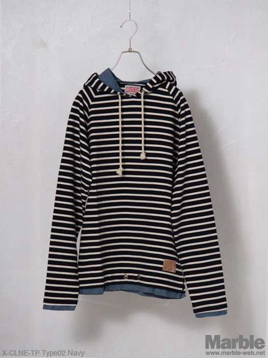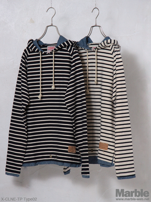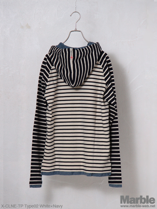 シャリ感を持った空紡糸を使用したボーダープルオーバーパーカー。シャンブレーを袖口、裾に配したデザインがポイント。フードに施されたクロス刺繍は、クロスネスのアイコン。カラー展開も豊富で、レイヤーなど多様に活躍してくれる。同素材で7分袖も展開。