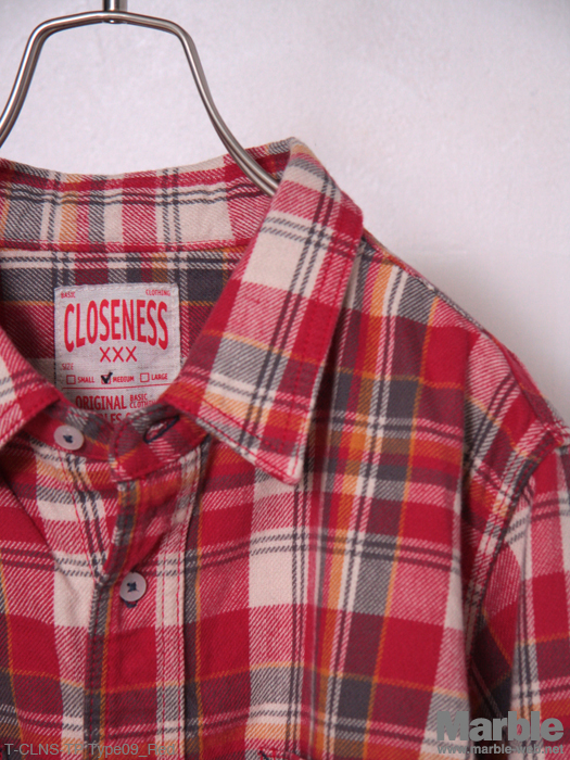 しっかりと織り込まれたネル生地を使用したチェックシャツ。細かなところにまでしっかりと手の届いたディテールは見事。3本針や太い番手で縫い上げた無骨な印象が魅力的。オリジナルボタン、タンニン帆布、クロスステッチがCLOSENESSオリジナルの証。