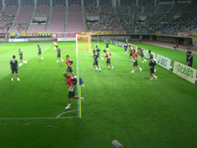 ピッチ確認の為にジュビロの選手たちが現れて、川口を発見した瞬間、一気にテンション上がりましたっっ