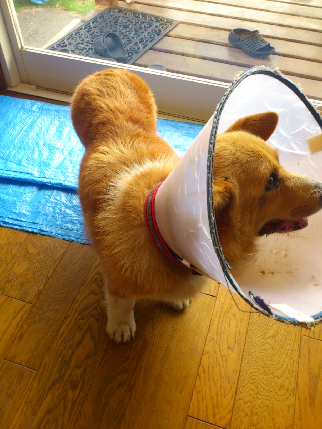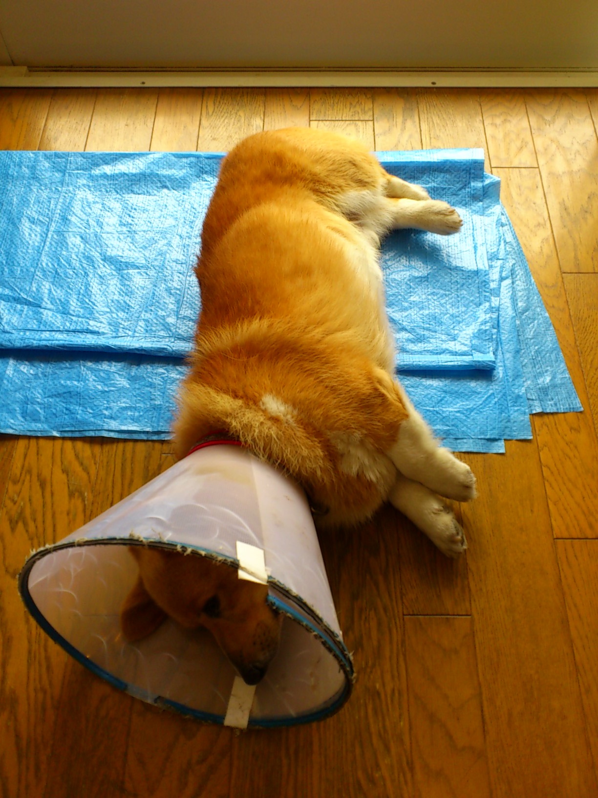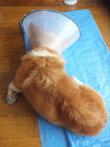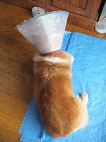 傷口を舐めないよーに、なんかメガホン装着されてましたっっ