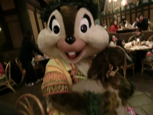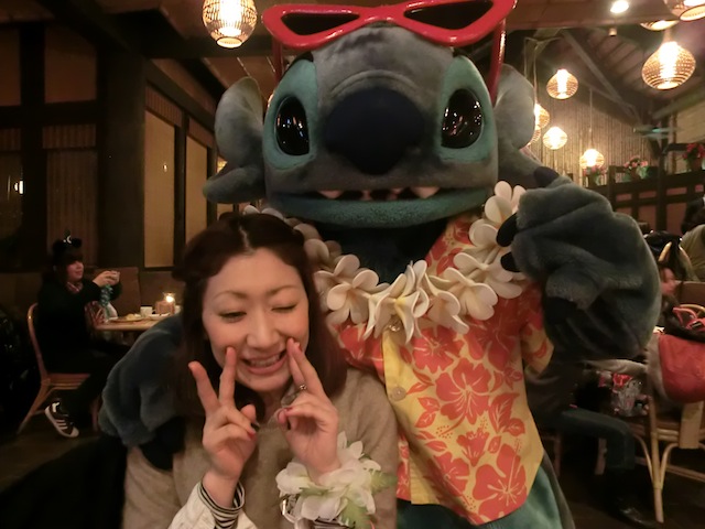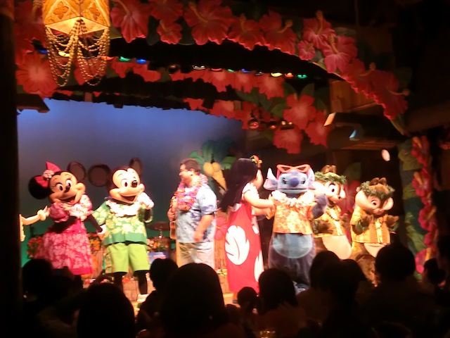 いろんなキャラクターが席まで会いに来てくれるショーは最後にみんなでフラを踊ります♫