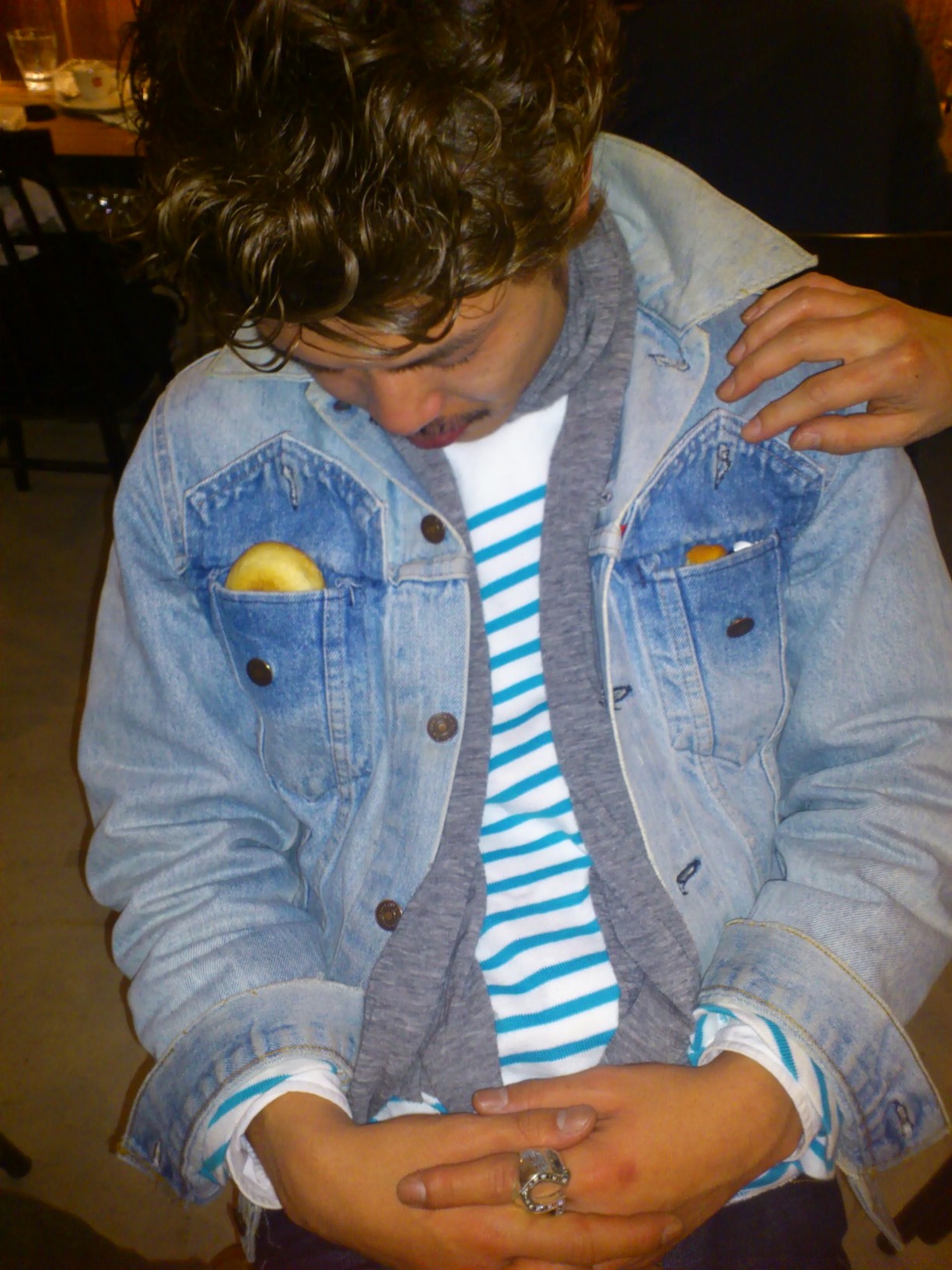 右のポッケにパン☆左のポッケにヒーコータイムに頂いた手作りマドレーヌを忍ばせてぇ〜