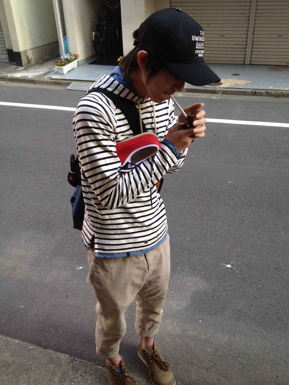 タバコの灰をクツの裏につけてました!!