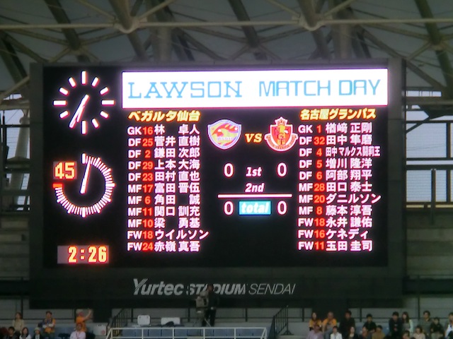 こんかいは、ベガルタ仙台 vs 名古屋グランパス