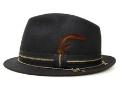 ■リボン部分に金のステッチ、金属のチェーンとトップを用いポイントとしたハットになります。裏地にはドットの生地を使用しています。