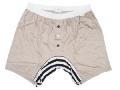 ■カットソー生地を使用したトランクス。トランクス型には珍しくカットソー素材を使用してリラックスできます。ややスモーク調のピンクのドット生地に、股下部分にはボーダー生地の切り替えしが入った一枚。