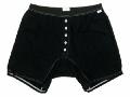 ■ベーシックなブラックボディのトランクス。シンプルなデザインにボタンとステッチに使用された白が映える一枚です。