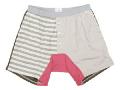 ■全体的に淡い色合いの切り替えしに股下のピンクがポイントのトランクス。ゆったりとしたシルエットでリラックスして着用することができます。