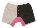 ■3色のドット生地を使用したトランクス。ステッチやボタン、股下等に所々あしらったピンクが印象的な一枚です。