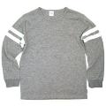 ■ネップ生地を使用したフットボールカットソーです。素材を活かしたシンプルな作りになっています。両腕のラインや袖のリブがアクセントになっています。シンプルで着回しの利くアイテムに仕上がっています。