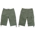 ■バックサテン生地を使用した定番の7分丈カーゴパンツです。後ろ右ポケット下部に染み込みプリント、更にバイオストーンウォッシュを施すことでアタリを出し独特な風合いに仕上がっています。