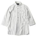 ■ワークテイストが詰まったストライプシャツ。フロントボタンにはUSED加工されたオリジナルコンチョボタンを使用している。