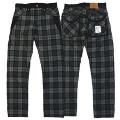 ■ウールフラノチェック生地を使用したパンツです。全体的に色身を抑えた作りになっています。サイドのコーデュロイパイピング、部分的なレザー使いでアクセントを付けています。膝まで裏地を付け穿きやすい仕上がりになっています。