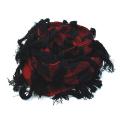 ■フリンジ付きのリングマフラーです。オリジナルで編み込んだブロックチェック柄にアクセントとしてフリンジを付けた作りになっています。コーディネイトのアクセントに最適なアイテムに仕上がっています。