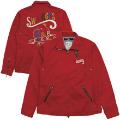 ■ツイル生地を使ったスイングトップです。背中に入ったビリヤードをモチーフにした刺繍がインパクト大です。程良くシェイプしたウエストなど、細身でキレイなシルエットに加え、部分的にカウレザーを使用するなど、高級感ある仕上がりとなっています。
