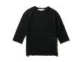 一件シンプルなVネックのカットソーですが、良くみるとラグラン部分と裾にハンドステッチを施していたり、脇から後ろにかけて同色のロゴが入ってます。ハンドステッチはミシンでは出来ないので職人さんが丁寧に仕上げいます。ロゴもラバープリントでさりげなく見えるようにしています。1枚で着た時は、同色のロゴがさりげなく見えます。シャツの中に着た時には、ハンドステッチがさりげなく見えるようにしています。ありそうでなかったVネックのカットソーでシンプルながらも愛着が湧く一枚だと思います。