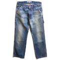 本場岡山産のデニムペインターパンツ。ヴィンテージさながらの風合いが魅力的です。赤のステッチや星のリベット等、ディテールも見所多数です。