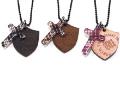 チェック柄のアクリルクロスと、ロゴの刻印が彫り込まれたウッドのエンブレムが重なり合うネックレスになります。トップ部分は各単体でも着用可能です。Black塗装を施した75cmの長めのボールチェーンが付属しますのでお好みの長さにカットしてご使用下さい。