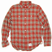 ■ツイルシャーリングチェック生地を使ったベーシックなチェックシャツ。60年代前後までのミリタリーシャツ、ワークシャツに良く見られるマチを付け、袖口裏にも補強、デザインを兼ねてスレーキ生地を貼り、更に脇部分、袖部分の縫い合わせは環縫い(チェーンステッチ)にしてある為、洗い込むことによってパッカリングが生じ独自の風合いが出てきます。また、環縫い(チェーンステッチ)は伸縮性に富んでいますので、袖、脇部分が動いたときにしなやかに伸び着心地の良さを実感できます。生地独特なシワ感がラフな雰囲気に仕上がっています。