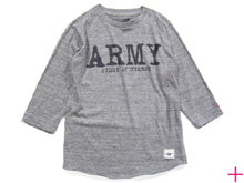 ■3種類の糸を使用する事でヴィンテージ感を表現したラグランスリーブの七分袖Teeになります。胸にはCLOSENESS的解釈の[ARMY]ロゴをプリント。左袖にはクロスが刺繍されます。