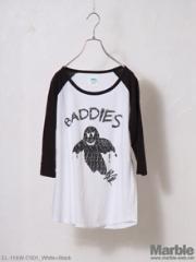 ■レディースブランド"eela"のアイテム。レーヨン混の柔らかい着心地のいい素材を使ったラグランスリーブTシャツ。かすれた感じを表現したプリントを製品洗いを施している。レディースらしいふんわりとした雰囲気f特徴的。