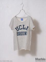 ■レディースブランド"eela(エーラ)"。スウェット素材を使ったTシャツ。UCLAプリント製品洗いを施し、切りっぱなしデザインが可愛らしく、レディースらしい首元が広めのアイテム。これからの時期は、レイヤードで活躍してくれる。