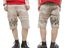 ■民族柄を大胆に使用し、ジグザグ模様のステンシルを右腿部分に入れたeight初のハーフパンツ。穿き心地は柔らかく、これからの季節にヘビーローテーションで着用してほしい一点。上半身をシンプルにまとめるのが着こなすポイント。