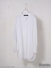 ■約100年前のドレスシャツをデザインソースに製作したプルオーバーロングシャツ。長めの剣ボロ、貝ボタンなどディテールを熟知しているココならではの仕様が落とし込まれている。サンプルの襟元に付いていたネームをもとにBen'sとネーミング。Whiteはストライプ柄、Blackはドット柄生地を使用している。