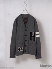 ■ここらしい度詰めで編み上げたレタードカーディガン。度詰めニットは製品化が難しく希少性の高いモノとなっている。ワッペン、袖のラインがポイント。