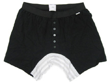 ■カットソー生地を使用したトランクス。トランクス型には珍しくカットソー素材を使用してリラックスできます。股下部分にボーダー生地の切り替えしが入り、グラデーションとなったボタンも可愛い一枚。