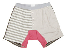 ■全体的に淡い色合いの切り替えしに股下のピンクがポイントのトランクス。ゆったりとしたシルエットでリラックスして着用することができます。