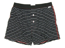 ■ショート丈のトランクス。シンプルなボーダーながらサイドに入った赤のステッチがカワイイ一枚。好評のトランクスをショートタイプにした、リラックス&フィットタイプです。