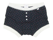 ■ネイビーにピンクのドットがカワイイ一枚。ウエストとリブを配色でホワイトとし、ポイントとしています。