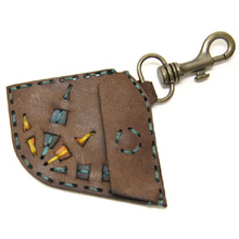 レザー素材を用いたコインケース。フラップ部分はボタンにより開閉可能です。ベルトループ等に装着してお使いいただけます。