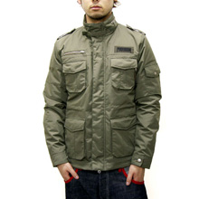 ■スノーボードウェアやマウンテンパーカーなどに使用される撥水性や保温性に優れた素材を使用したM-65JKになります。ナイロン素材ではありますが、本格的で細かな切り替えのステッチ、ジップ使いなどで立体感を出し、裏地はPROGRAMらしくナイロンチェック生地になっています。立襟部分のジップは飾りジップになります。左胸上のテープと右肩部分に同色で刺繍が入ります。
