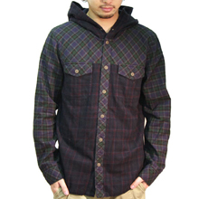 ■切り替えフードチェックシャツです。フード裏にサーマルを使用しています。製品染めを施し全体の色を馴染ませ、落ち着いた雰囲気にに仕上げています。