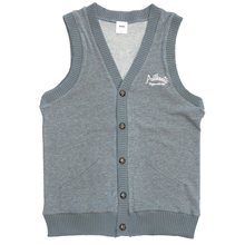 ■杢裏毛生地を使用したベストです。アウトポケットが付いていることでアウターな感覚で着ることができます。胸に刺繍を施し、裾等をニットリブにすることでポイントを付けています。羽織に最適なアイテムです。