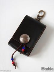■オイルレザーを使用したモバイルケース。コンチョ、革紐のビーズがポイント。腰回りのアクセントとしても使えます。デジカメや携帯を入れるのに最適。