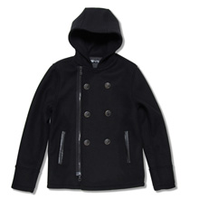 ■メルトンを使用したフードのPコート。フロントジップにはririのジップを使用。ストーンが埋め込まれたスライダーもポイント。
