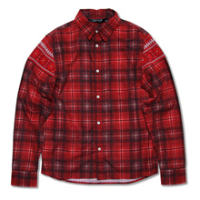 ■プリントチェックのネルシャツ。アームホール部分のジャガードの切り替えがポイント。