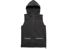 ■単調になりがちな夏のスタイルの幅を広げるフード付きベスト。風合いのある顔料染め生地を使用。レイヤード使いにも使える何かと便利なアイテム。