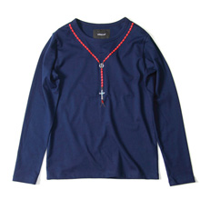 ■ロザリオを刺繍で表現したカットソー。ロザリオさざれ石とビーズを縫い付けている。