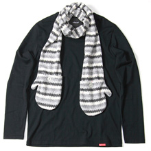 ■ジャガー度のマフラー付きカットソー。先端の手袋型のポケットには手を入れることもできる。