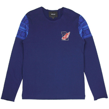 ■肩の部分をジャガードで切り替えたミニ裏毛のカットソーです。胸にはオリジナルのワッペンが施されています。