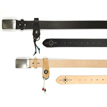 ■剣先にスタッズを打ちこんだカウレザーベルトです。キーホルダーとしても使えるサルカワが付いています。使い込んで、エイジングを楽しみたいアイテムです。