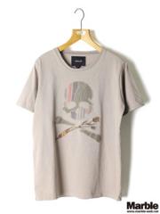 ■rehacerからギミックの効いたカットソーの登場です。数種類の生地をパッチワーク状にしドクロ柄に縫い付けています。クロスボーンの片方が花になっていてレアセルらしい仕上がりとなっています。