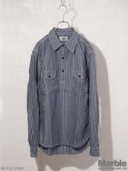 ■ワークテイストのプルオーバーシャツ。シャンブレー生地を使い、各所を3本針にて縫製するなどしっかりと作り込まれている。今シーズンもシャンブレーシャツは注目アイテム。ややゆったりとしたサイジングでレイヤーなどに。