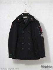 ■ウールメルトンを使用した上品なピーコート。寄港地でのお土産風な刺繍、パッチをオーダーしたイメージで製作。左のショルダーパッチはポケット仕様で遊び心ある仕上がりに。定番的なピーコートをうまくココらしくアレンジした逸品。