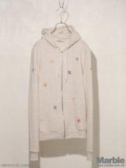 ■裏起毛のスウェット生地を使用したフードパーカー。霜降りの独自の色味、風合いが特徴的。フラワー刺繍はデザイナーの手作業にて施しているため柔らか雰囲気に。細かな部分もしっかりと作られている一着。刺繍がコーディネイトのポイントに。